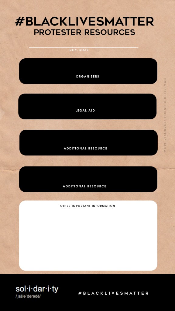 Organization will matter in this movement βπΏβπΎβπ½βπΌβπ». We’ve created some templates to be able to easier to share solidarity information in this time. Share these and challenge your followers to do the same. Please send me more ideas! I will continue to create them and add them to my βSolidarity βπΏβ story highlight.